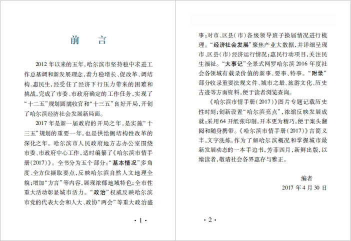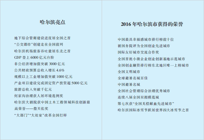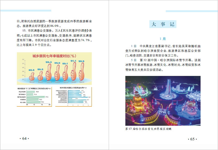 简 介: 28365365备用网址大全围绕市委、市政府2016年中心工作,精心设计编写了《哈尔滨市情手册(2017)》。全书分为“基本情况”“政治”“经济社会发展”“大事记”“附录”五个部分,其中“基本情况”包括位置、面积、地形、水文、土壤、矿产、林产、植物、动物、旅游、气候、人口、民族、宗教、方言、民俗、行政区划,以及全市性重大活动。“政治”载入了市委十三届十二次全体会议、十四次代表大会、十五届人大一次会议、十二届政协一次会议,以及领导干部名录等内容。“经济社会发展”包括数字看哈尔滨、2016年经济指标、2012~2016年政府工作报告看哈尔滨、65项惠民行动项目以及城乡居民幸福度调查。“大事记”包括年度内社会各领域有载录价值的新事、要事、特事。“附录”选录了市委市政府重要文件、市政府规章、市政府规范性文件、哈尔滨之最、市第五批市级非物质文化遗产名录、湿地景区名录、市工农业旅游景区示范点、哈尔滨方言中的俄语词汇、历史上各国在哈尔滨设立的领事馆、哈尔滨市代表性街路新旧街名一览表、历史上哈尔滨知名电影院、历史上哈尔滨知名教堂,以及2016年28365365备用网址大全工作纪事等资料。图片专题记载历史性时刻、哈尔滨市获得的荣誉、哈尔滨亮点。 |